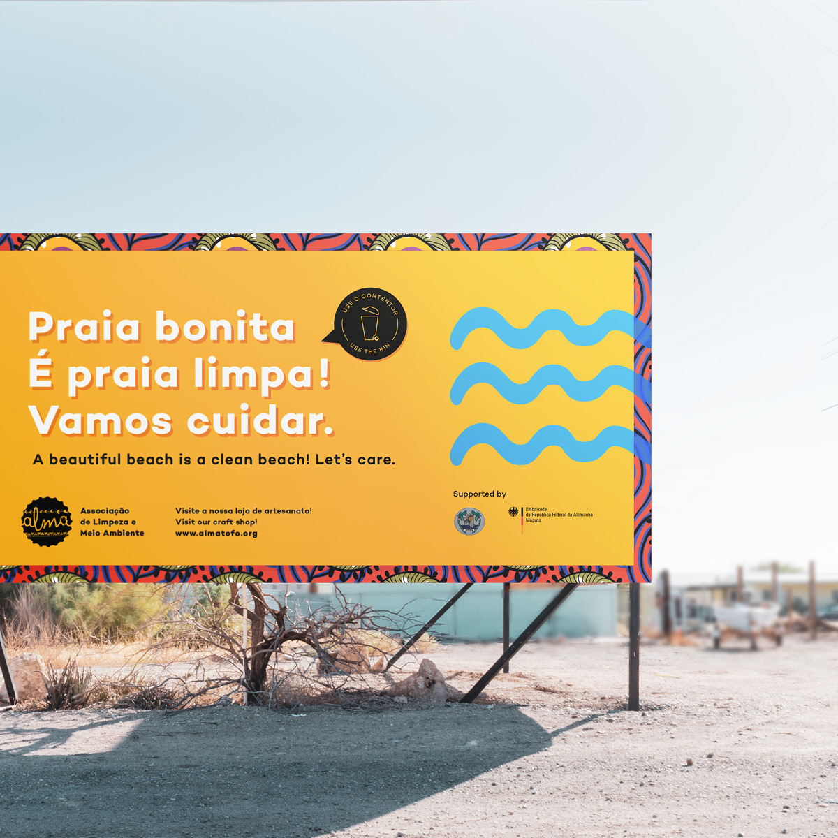 To amplify ALMA’s mission of waste reduction and community impact, we created a visual language featuring local kapulana patterns and designed a series of bold and colorful billboards. These designs, located at Tofo’s busiest spots, bring ALMA’s work into the spotlight and helped ALMA to connect with locals and visitors, spark action and find volunteers.