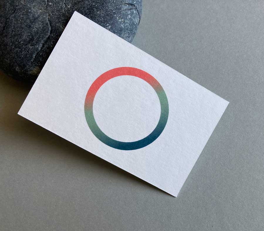 Die Werke von Mo Kryger bewegen sich zwischen Wasserfarbe und Wandern, Stillleben und Schreiben, Performance und Podcast – immer im Fluss. Für sie habe ich ein Bildzeichen entwickelt, das ihre Verbindung zur Kreisform, ihr Medium Aquarellfarbe und die Thematik der Übergänge in sich vereint.